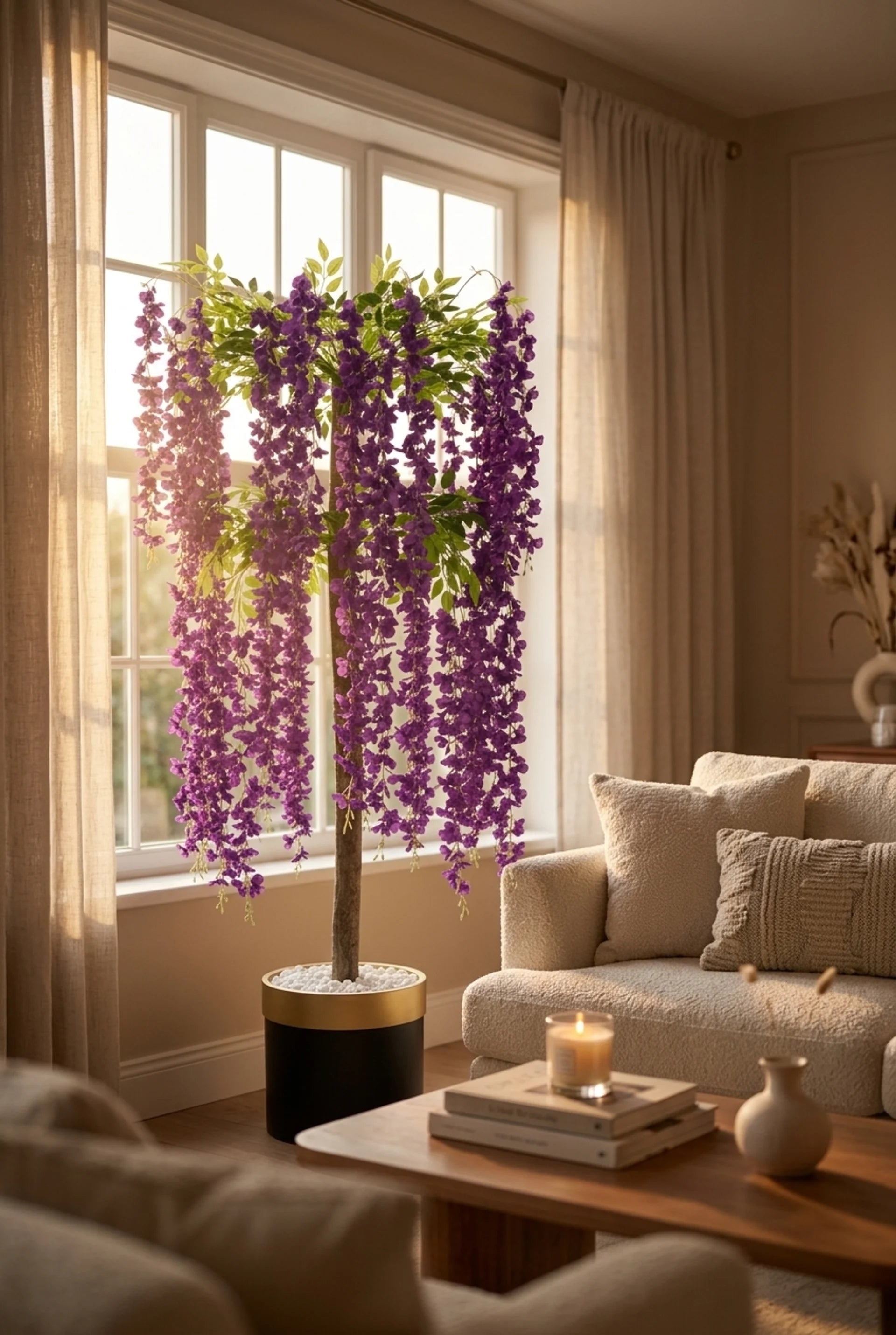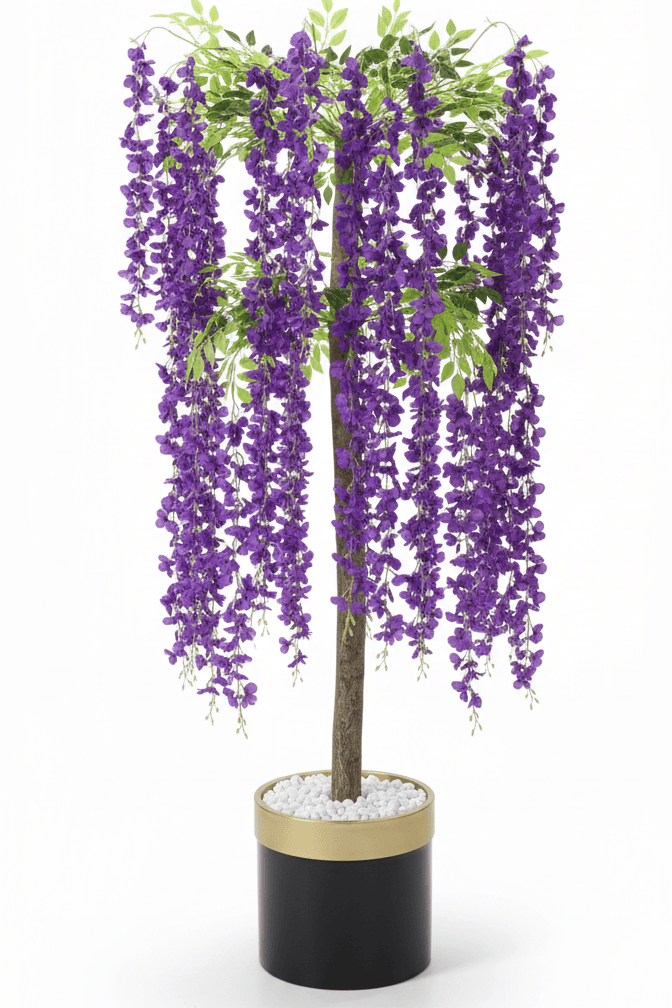Izrađen s pedantno pažnjom posvećenom detaljima, ovaj realističan Ljubičasto stablo glicinije 180 cm Unosi trenutnu eleganciju u vaš prostor bez potrebe za održavanjem. Sigurno postavljeno u vrhunsku, otežanu bazu.